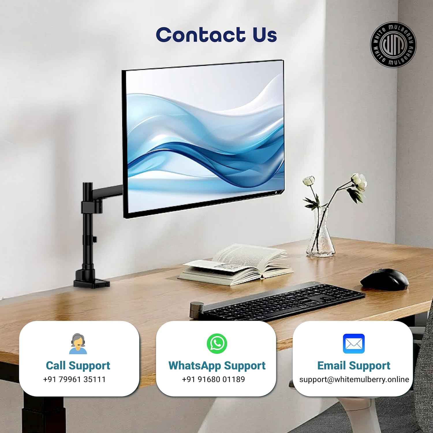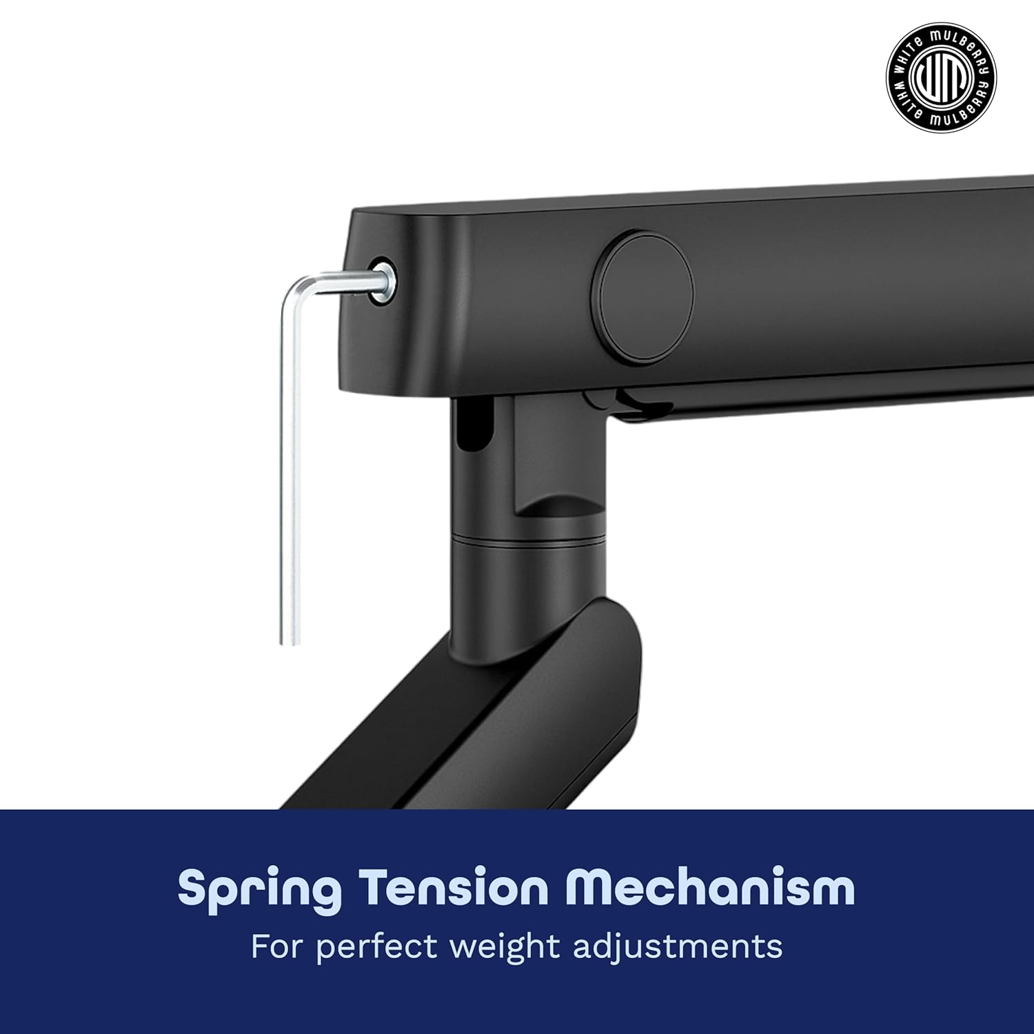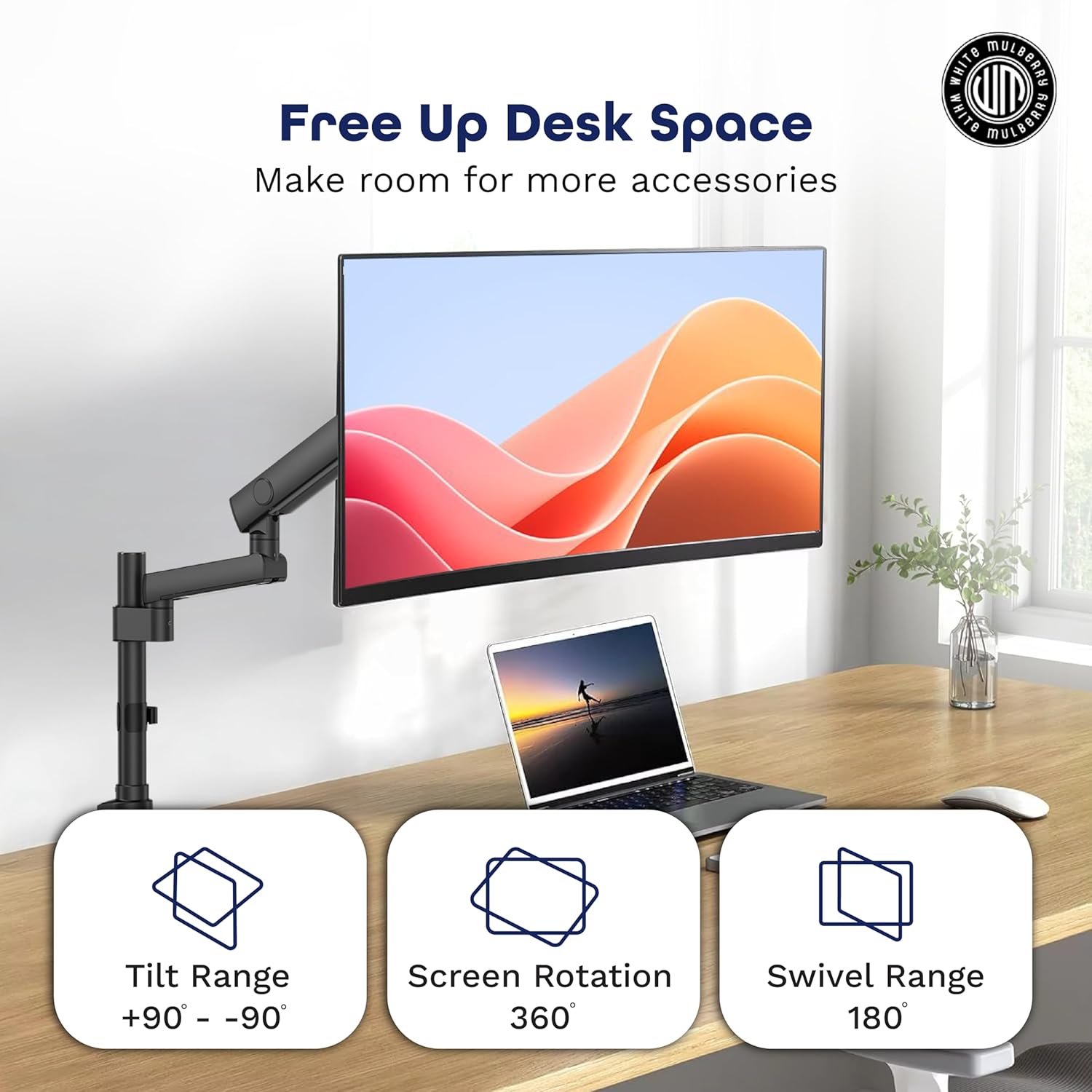 White Mulberry Single Screen Pole Mounted Heavy-Duty Mechanical Spring Monitor Arm for 17-40 Inch |2-22kgs| Flat & Curved Screens, Universal Desk Mount with Swivel, Tilt, Rotation