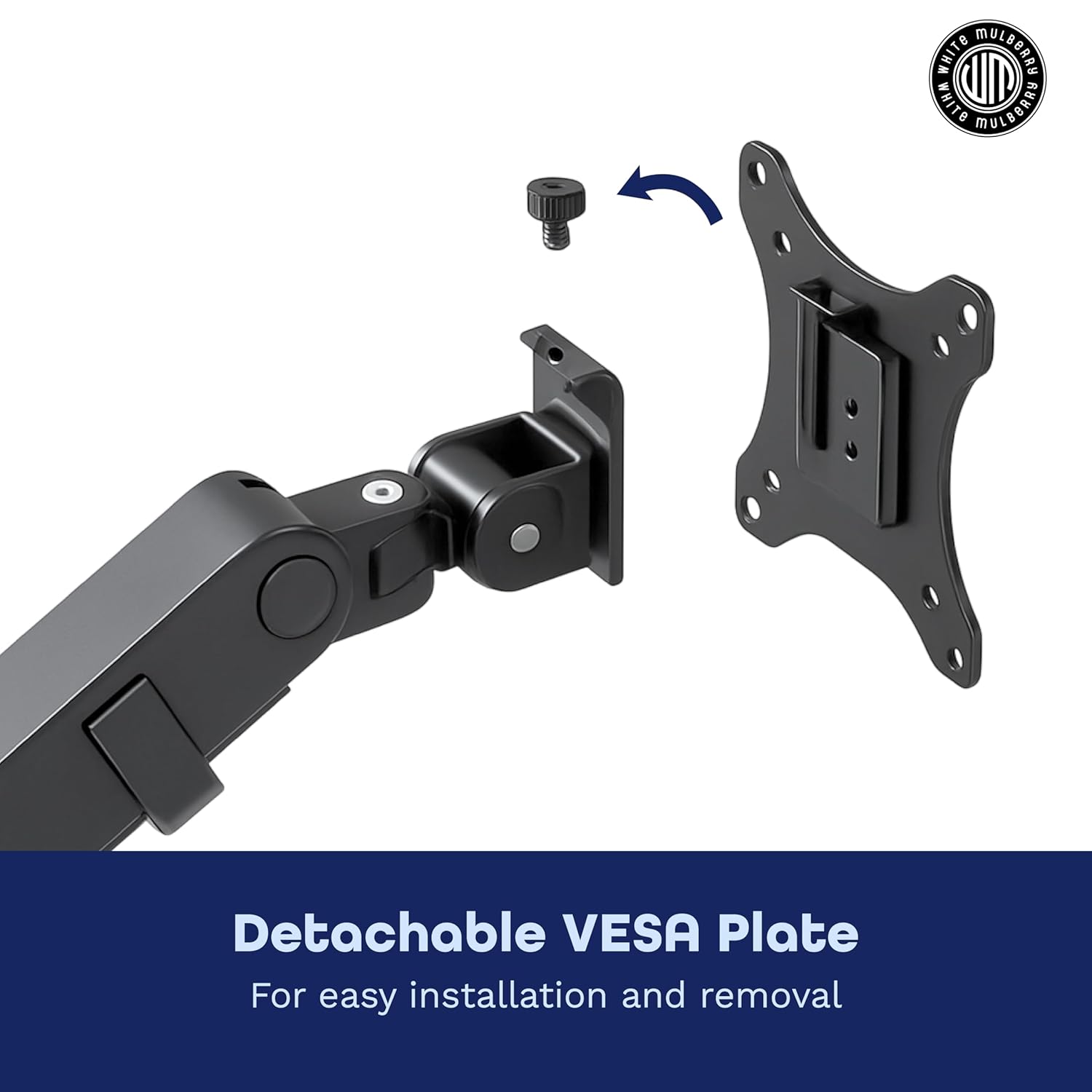 - Detachable VESA Plate – Quick-release VESA design (75×75/100×100) allows fast installation and a secure fit for 17″–40″ monitors, including flat and curved screens.